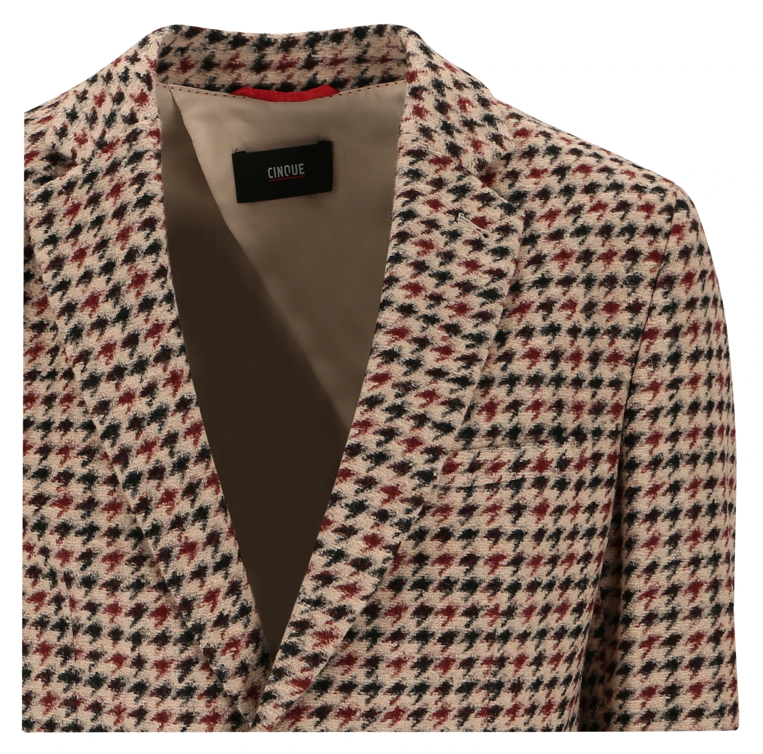 Lässig und Chic. Das unkonstruierte 2-Knopf-Sakko mit hellem Hahnentritt von CINQUE und fallendem Revers passt perfekt in die Garderobe.