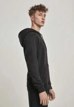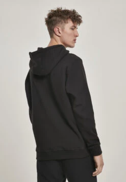 Ein klassischer Kapuzen-Pullover für umweltbewusste Herren, der auf eine bewährte Form in Verbindung mit einem hochwertigen Material setzt  er ist aus weicher und hautfreundlicher Bio-Baumwolle gefertigt. Der Herren Hoodie bringt zudem eine große Kapuze samt Kordelzug und verstärkten Kunststoff Enden mit. Die breiten Bündchen an den ßrmeln und der breite Saum sind elastisch und sorgen für eine geschmeidige Passform. Abgerundet wird der schlichte Style des Männer Hoodys durch die obligatorische Känguru-Tasche am Bauch.