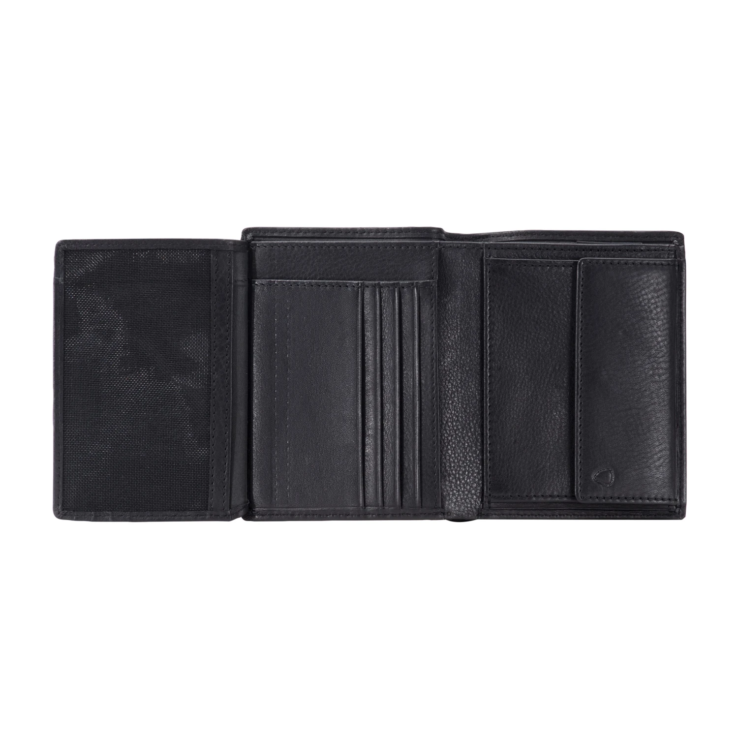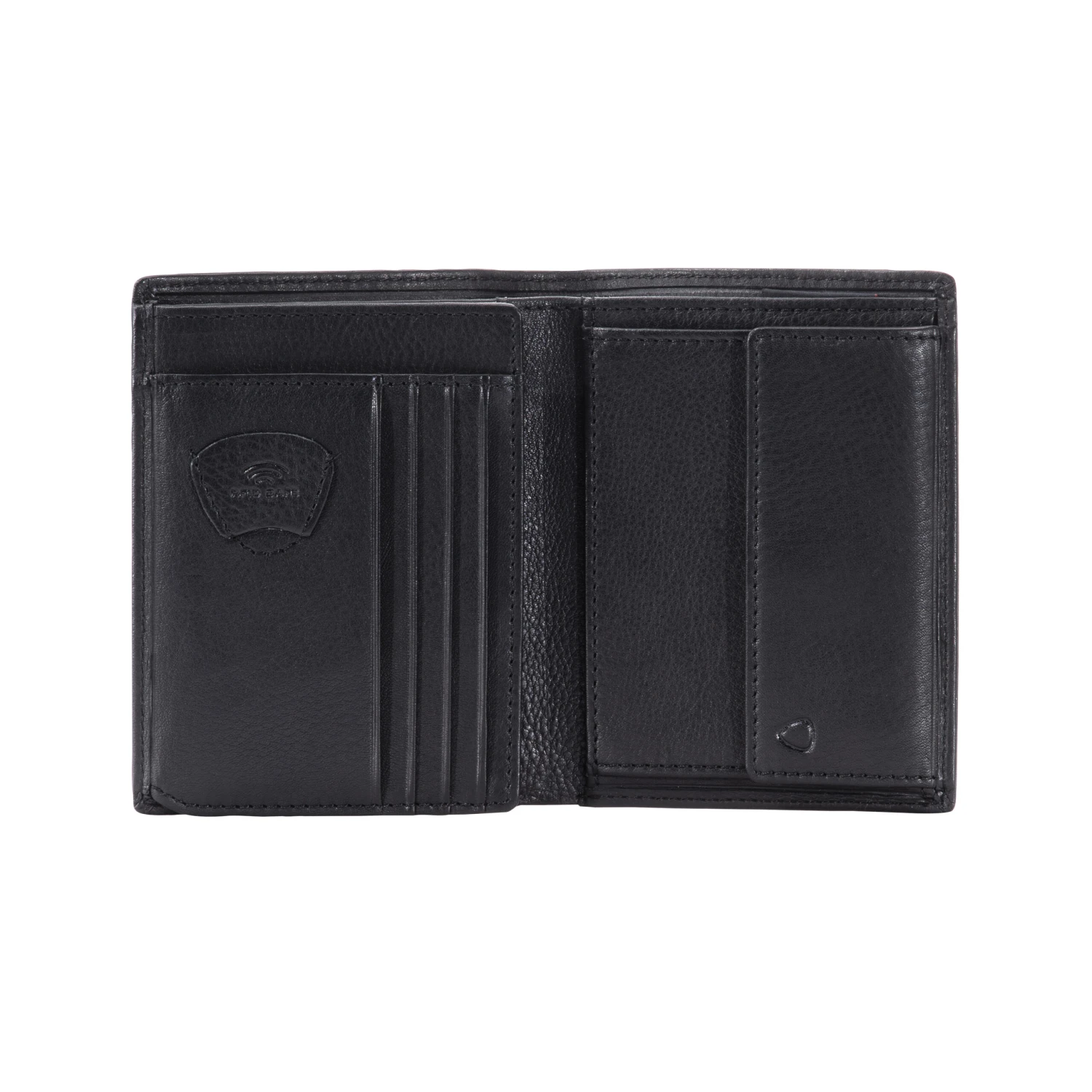 Die Logo Applikation aus gebürstetem Metall ist in das Leder eingelassen und wirkt dadurch besonders edel. Die Modelle aus einem hochwertig genarbten Leder sind mit viele Steckfächern ausgestattet.