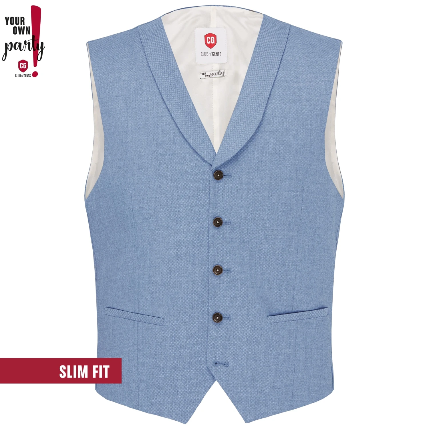 Your Own Party by CG – CLUB of GENTS, Weber: Marzotto, Super 120’S Garnqualität, Passform: slim fit, Oberstoff in einer schönen Rautenstruktur, Rückenlänge ca. 60,8 cm in Größe 50, Umlaufweite ca. 107,6 cm in Größe 50, Mit Schalkragen, Oberstoffrücken, 5 Schließknöpfe (der untere bleibt immer offen), 2 paspelierte Taschen, Verstellbare Rückenspange, Champagnerfarbenes Innenfutter